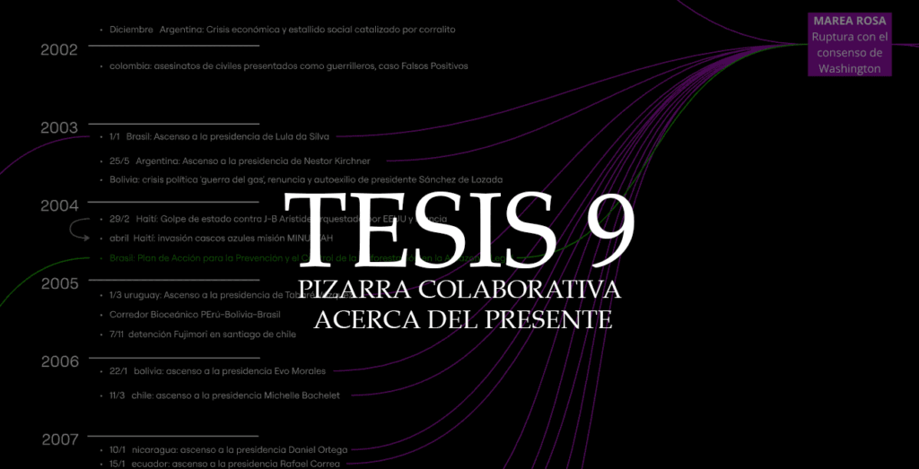 Pizarra colaborativa y en proceso: sintaxis cibernética, gobernanza y caos, escenificación del campo de batalla, escena latinoamericana, cyberwarefare, agenda ambiental